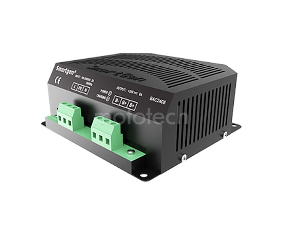 Зарядное устройство SmartGen BAC2408. Компактное и надёжное решение для обслуживания свинцово-кислотных аккумуляторов 24В. Устройство автоматически определяет степень заряда батареи и подбирает оптимальный режим зарядки, что значительно продлевает срок службы аккумулятора.
